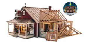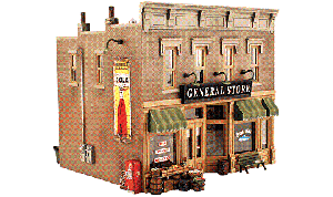 Woodland Scenics -- Ethyl's Gas & Service -- Built-&-Ready Landmark Structures(R) -- This vintage gas and service station with its open-beamed overhang, the old globed gas pumps, decals, signage and scene-setting detail is loaded with charm and nostalgia. Details include trash cans, an old bench and chair, cola machine, ice machine and pallets of old junk and car parts. The fenced outdoor service area features an oil-stained concrete floor, a lift, free-standing kerosene tank, old tires, dolly, pole lights and loads more.